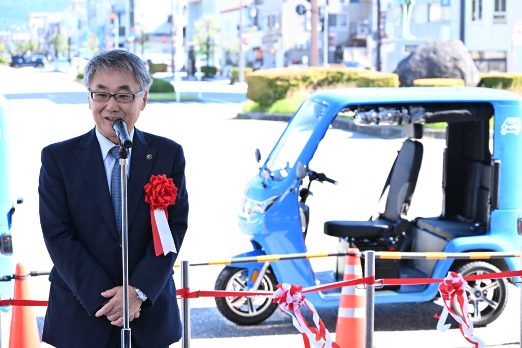 そして、迎えた初日。記念式典には魚津市長の村椿晃様や国土交通省北陸信越運輸局長・佐橋真人様をはじめ多く来賓の方々や報道機関にお越しいただきました。2組の利用者様へは記念品として魚津漆器のカップを贈呈。関係者様に見送られながら、順次、出発し、魚津市内の飲食店や名所を周遊したとのことです。モビリティのレンタルサービスとしては好調な滑り出しとなりました。