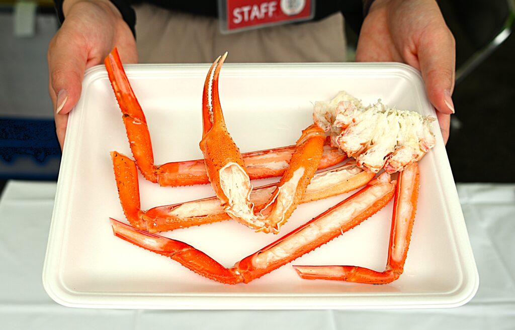 初日に販売した茹でガニ50杯(半身)は約1時間で完売。当日、TV局に生中継されました。筆者としては飲食系イベントの生中継で「完売となった」と聞いたのは初めてでした。