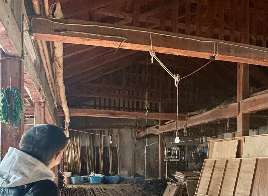 その後、魚津水産株式会社の取締役・中村好成さんのご厚意により普段は入ることのできない旧十二銀行(現・株式会社北陸銀行)の建物内部も見学。内部は、当時のままの内装が残されており、木の柱や壁の色合いから、長い年月、この場所が役割を果たしてきたことが伝わってきました。参加者は太い柱に触れたり、高い天井を見上げたりしながら歴史の重みを感じている様子でした。