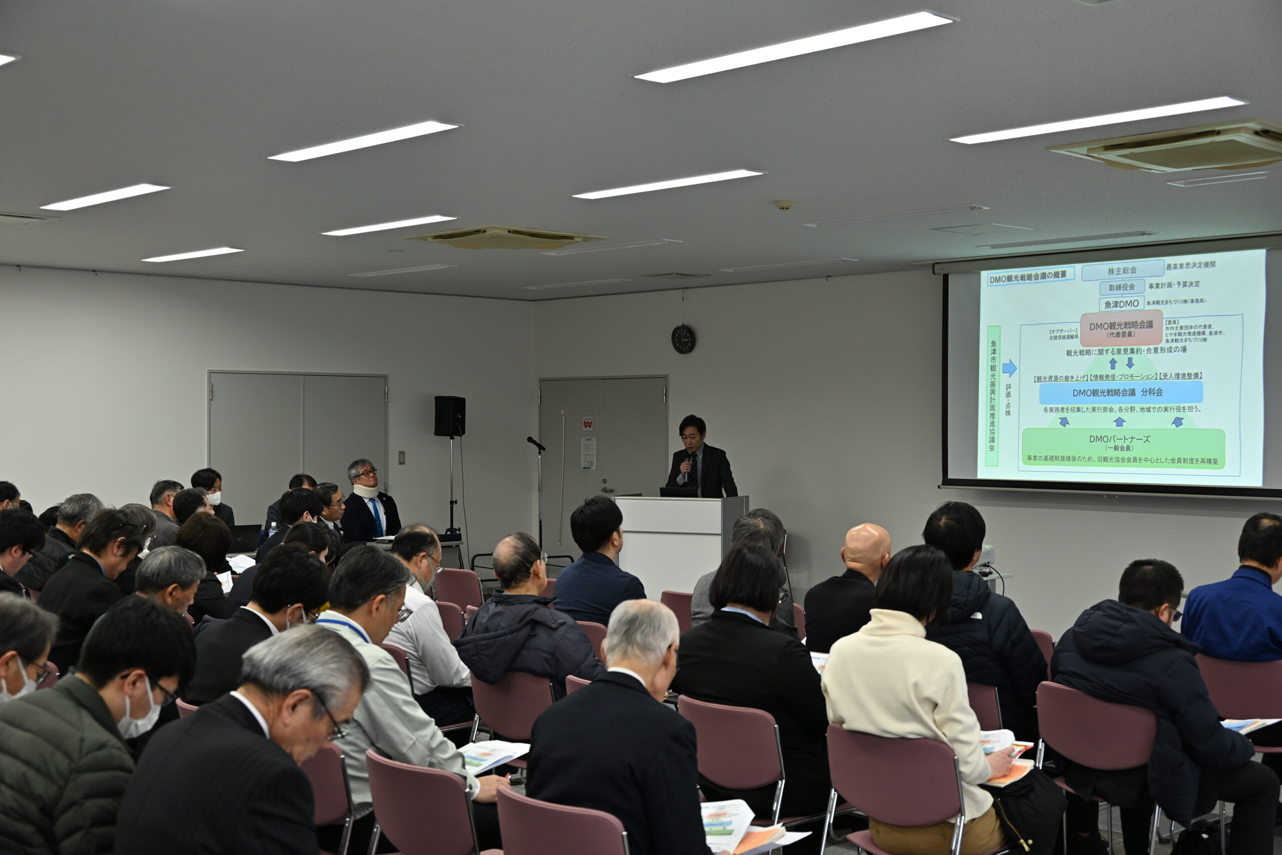 観光地域づくり候補法人(候補DMO)として登録を受けた当社は、本格始動を前に「魚津DMOキックオフセミナー」を魚津市とともに開催しました。参加者は定員40人を超え、市民を含むさまざまな関係者の関心度の高さが表れました。講師を務めた魚津市地域活性化起業人(副業型)で株式会社JTBツーリズム事業本部事業推進部地域交流チームグループリーダーの時任翔史さんは「魚津市の観光には大きなチャンスがあります」と力強く明言。観光の舵取り役を担う当社もチャンスを活かすために新規会員制度「DMOパートナーズ制度」の構築や旅行特化型動画SNSアプリへの参画、EVトゥクトゥクを活用したオプショナルツアーの造成、地場産品カタログギフトの発行などを予定しています。魚津の観光の未来を見据えたセミナーの内容を報告します。