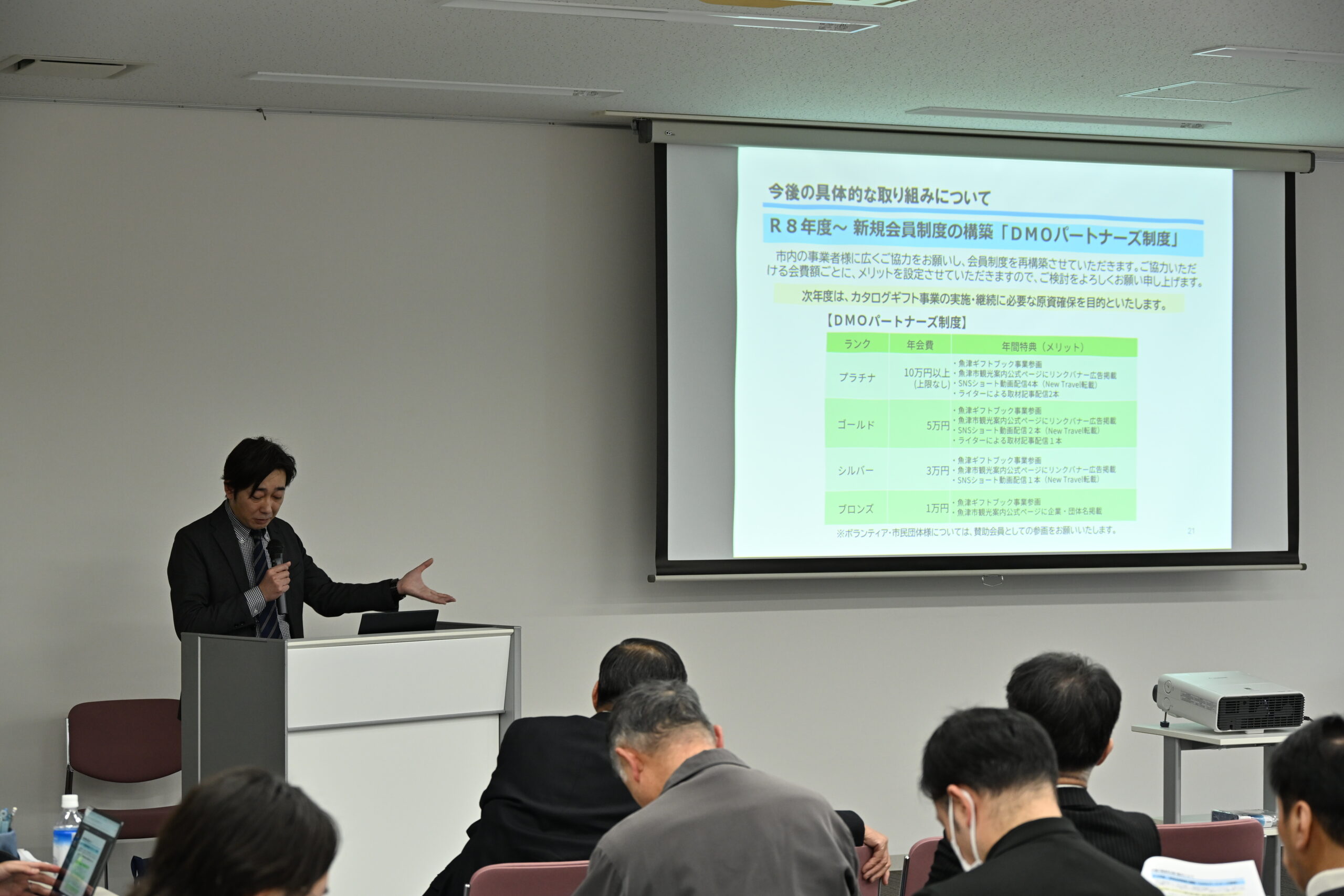 一方で、これらの施策は地域関係者の協力が必要です。当社としては、地域の関係者との共創によって観光施策を実行し、そこで得た収益を地域に還元する経済循環を目指します。この目的を達成するために新たな会員制度「DMOパートナーズ制度」を当社は構築します。会員様に対してランクに応じて特典も用意します。具体的には魚津ギフトブック事業への参画や広告掲載などのPRです。会員様の年会費はカタログギフト事業などの実施に充当します。これにより、事業の実施と継続を実現し、地域に還元される仕組みに発展させたい考えです。