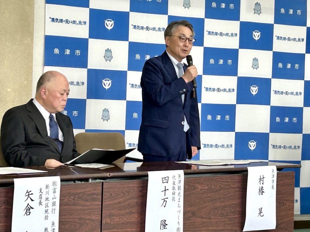 事業承継支援に関する連携協定締結式が4月24日、魚津市役所2階第1会議室で開かれ、弊社代表の四十万が出席しました。