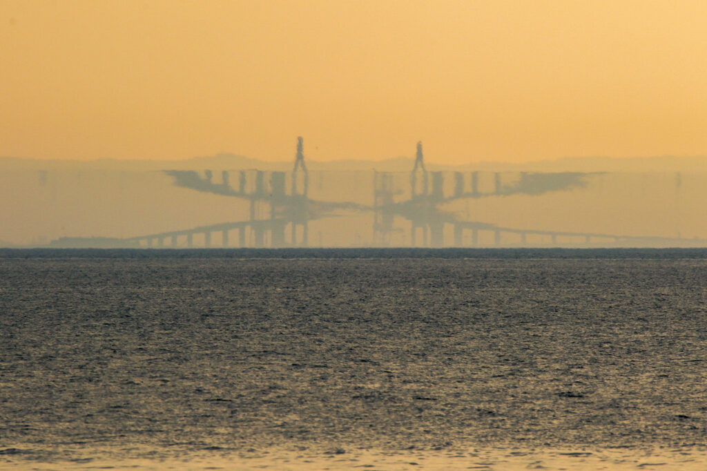 ~江戸時代以前から蜃気楼の名所として知られる土地「富山県魚津市」。とりわけ春にみられる上位蜃気楼は、大気中で光が屈折し、実際の風景が上に伸びたり、反転したりした虚像が現れる自然現象です。