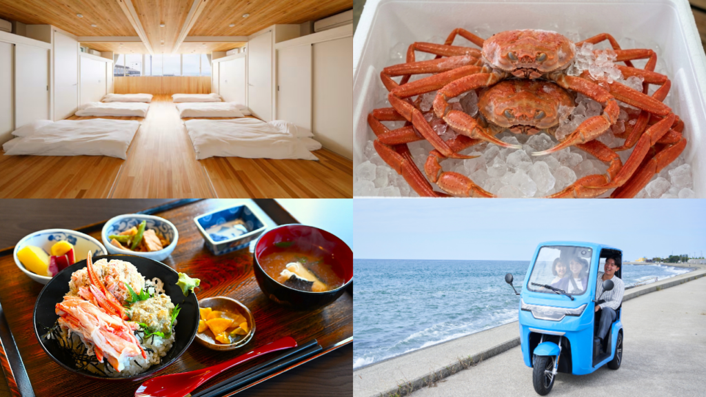 写真はイメージ(渚泊魚津丸、紅ズワイガニ、魚津丸食堂のメニュー、EVトゥクトゥク)